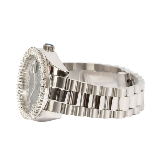Moissanite Stainless Steel Black Dial Mens White Steel Band Watch
