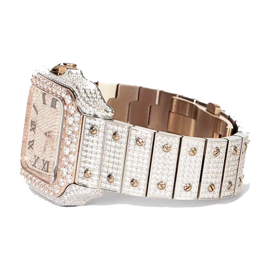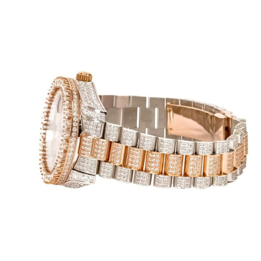 Moissanite Stainless Steel Mens Rose White Two Tone Steel Band Watch