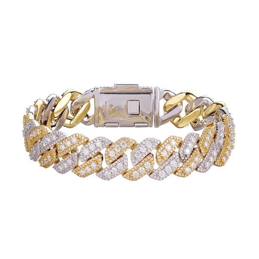 S.Silver Round Big Stone in Center Surrounded with Small Stones 14mm Moissanite Cuban Chain 8Inch Bracelet RP+GP 12-3/4 Cttw