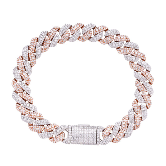 S.Silver Round Big Stone in Center Surrounded with Small Stones 10mm Moissanite Cuban Chain 8 Inch Bracelet RP+GP 6-7/8 Cttw
