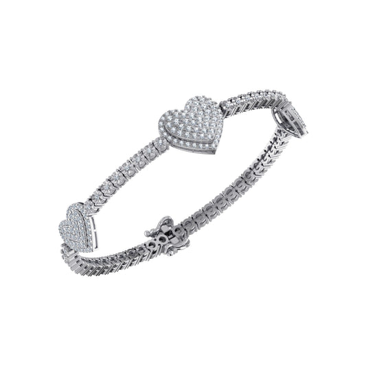 10K White Gold Round Diamond Heart Shape 7 Inch Bracelet 2 Cttw