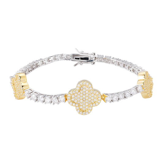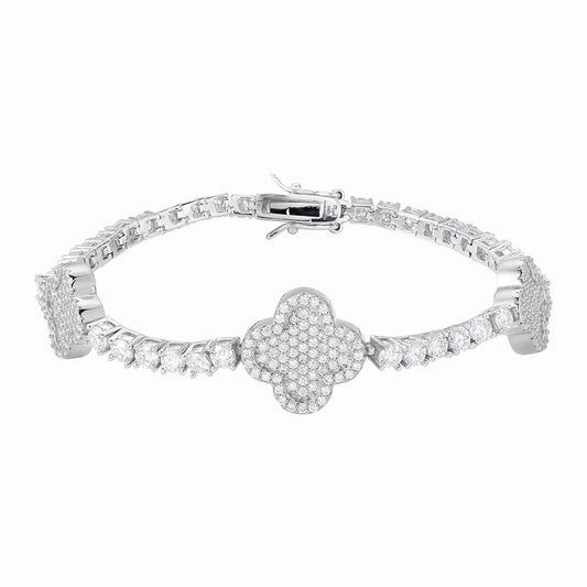 S.Silver Round Moissanite 4 Stone Flower with Color Stone Designer 8 Inch Bracelet RP 4-7/8 Cttw
