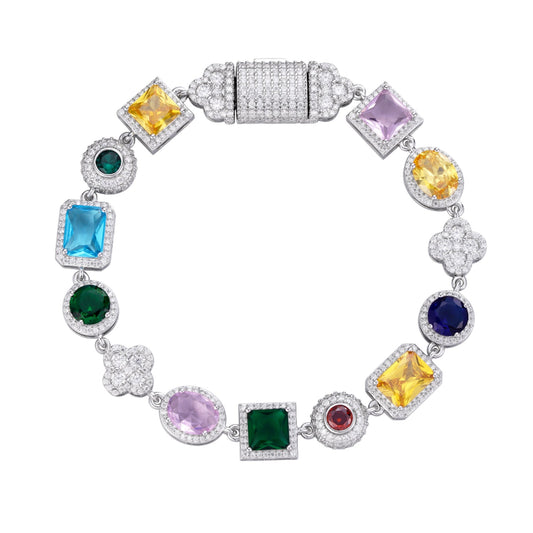 S.Silver Moissanite Round with Color Stone Designer 8 Inch Bracelet RP 2 Cttw