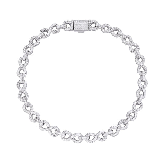 S.Silver 8mm Round Moissanite Infinity 8 Inch Designer Bracelet RP 8-3/4 Cttw