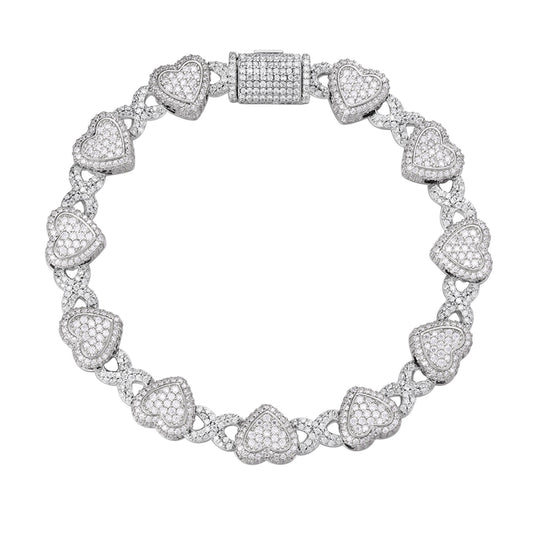 S.Silver Round Moissanite Cuban Heart Link Designer 7.5 Inch Bracelet RP+GP 5-5/8 Cttw