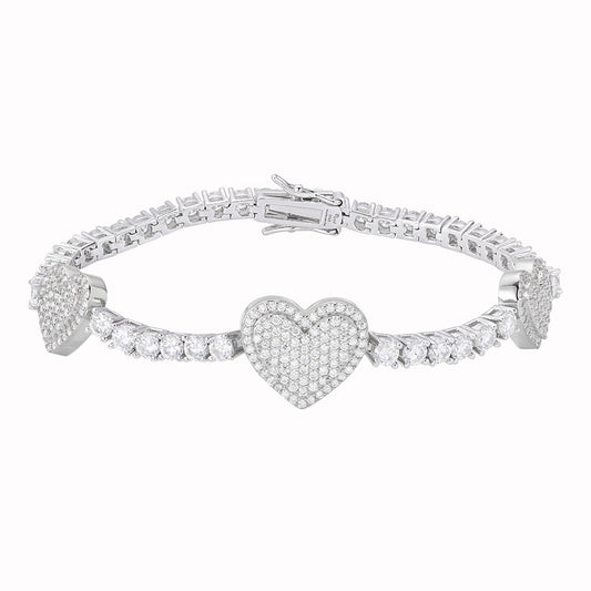 S.Silver Round Moissanite 15mm Heart Designer With 3mm Tennis Chain 7 Inch Bracelet RP+GP 1-1/8 Cttw