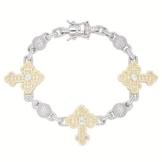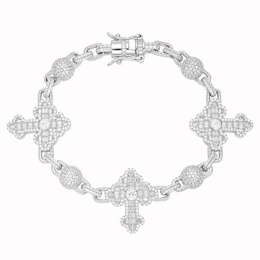S.Silver Round Baguette Moissanite Cross Religious 8 Inch Bracelet RP+GP 10-1/6 Cttw