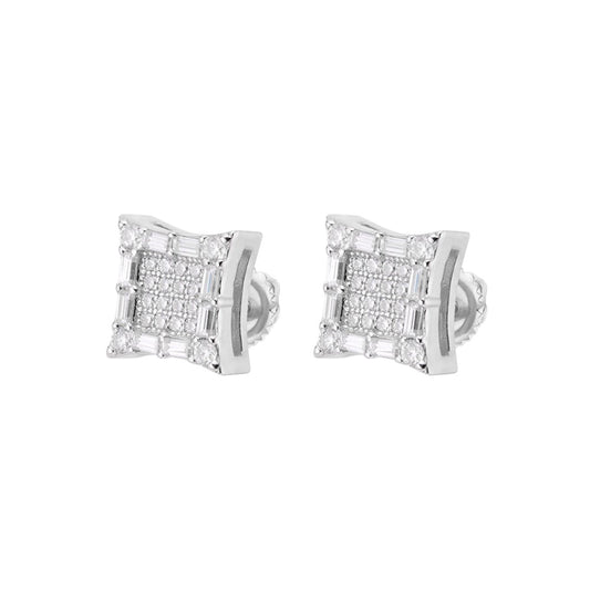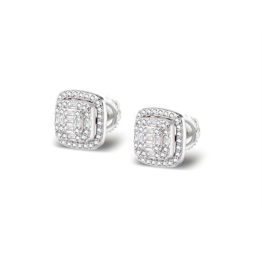 S.Silver Round Baguette Moissanite Square Shape Stud Earrings RP+PP 5/8 Cttw