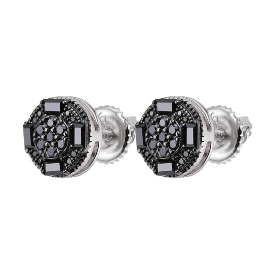 S.Silver Round Baguette Black Moissanite Square Shape Stud Earrings BP+RP 7/8 Cttw