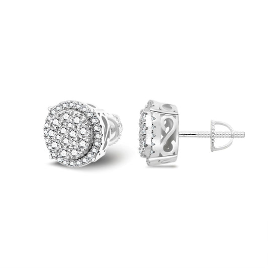 S.Silver Round Moissanite Cluster Designer Stud Earrings RP+PP 7/8 Cttw