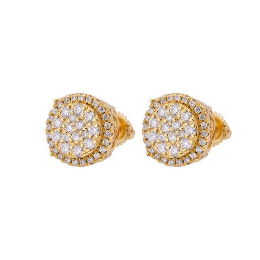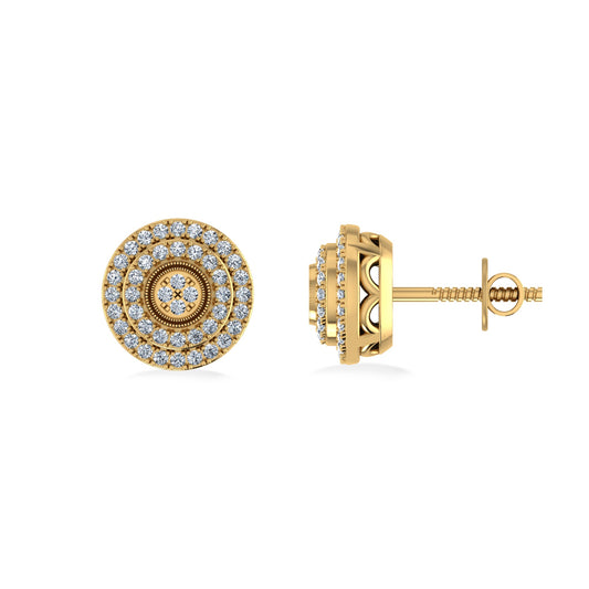 10K Yellow Gold Round Diamond Designer Mens Stud Earring 3/8 Cttw