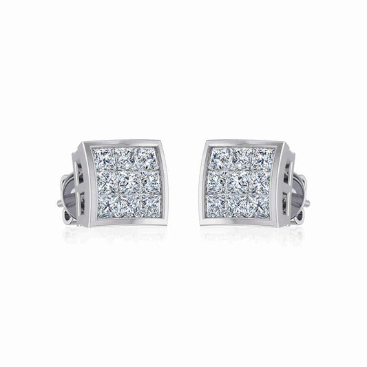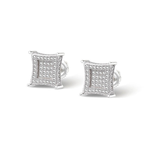 S.Silver Round Moissanite Square Shape Designer Stud Earrings RP 5/8 Cttw