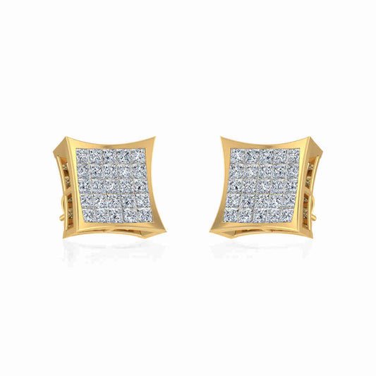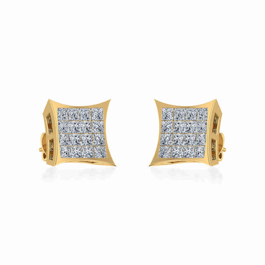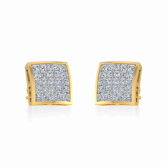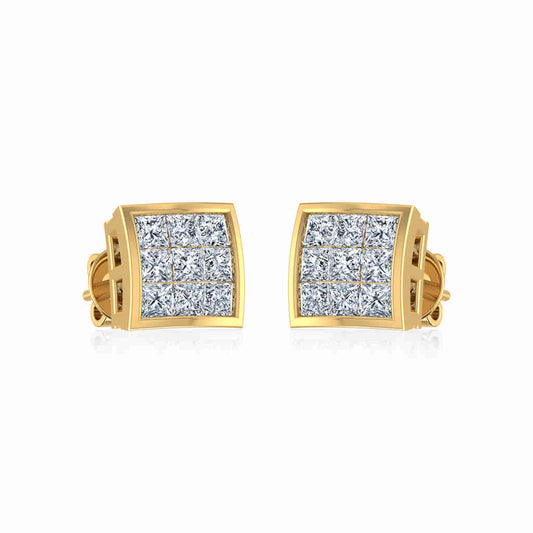 10K Yellow Gold Princess Cut Diamond Square Mens Stud Earrings 1/4 Cttw