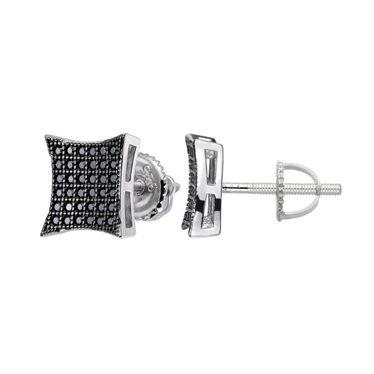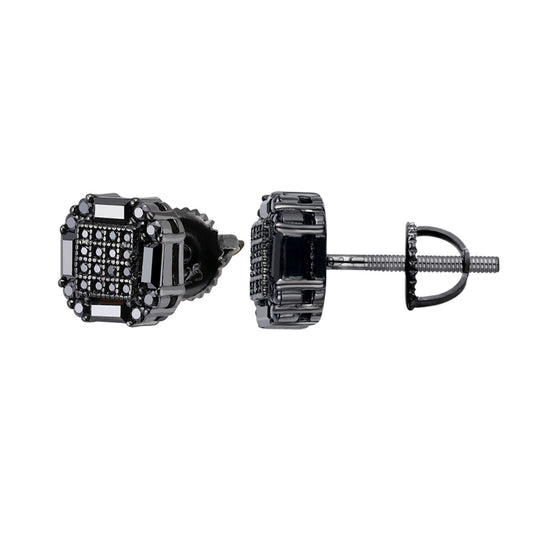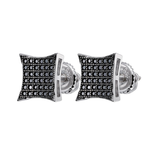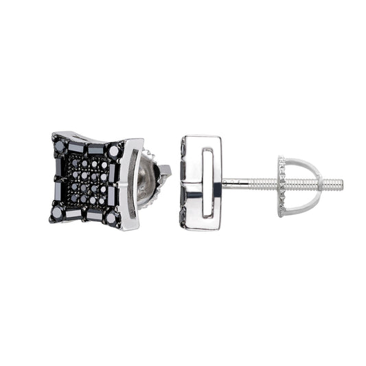 S.Silver Round Black Moissanite Square Shape Stud Earrings BP+RP 1/2 Cttw