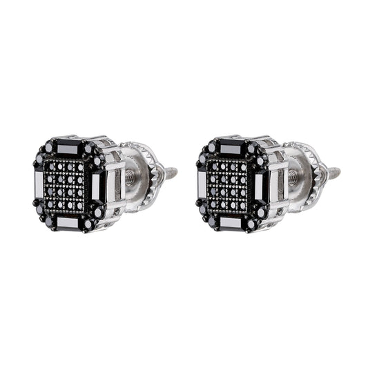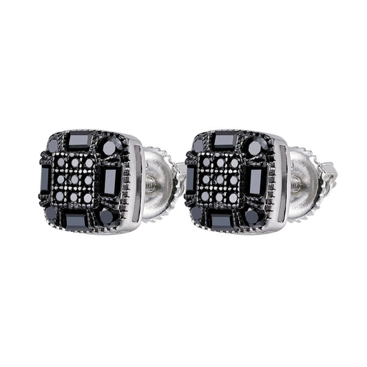 S.Silver Round Black Moissanite Square Shape Stud Earrings BP+RP 7/8 Cttw