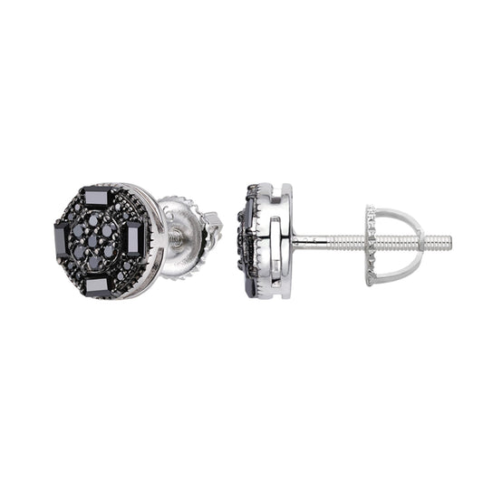 S.Silver Round Baguette Black Moissanite Stud Earrings BP+RP 5/8 Cttw