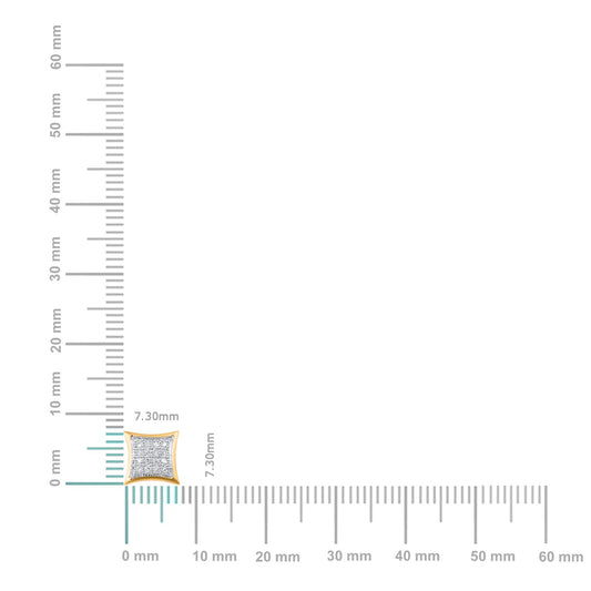 10K Yellow White Two Tone Round Diamond Square Stud Earring 1/10 Cttw