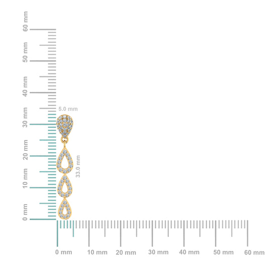 10K Yellow Gold Round Diamond Drop Shape Dangling Earrings 1/2 Cttw