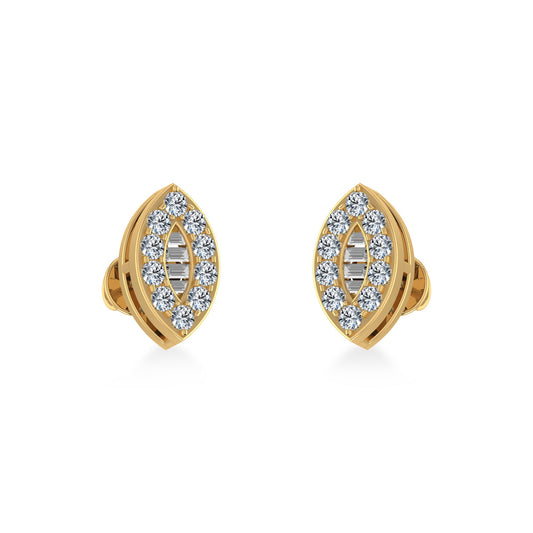 14K Yellow Gold Baguette Diamond Marquise Shape Stud Earring 1/4 Cttw