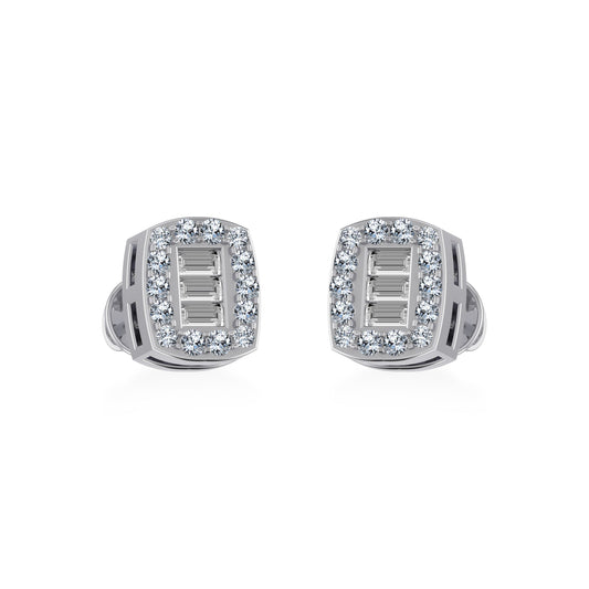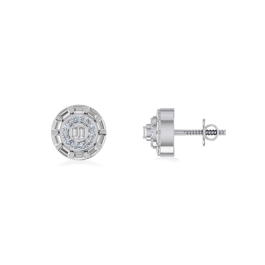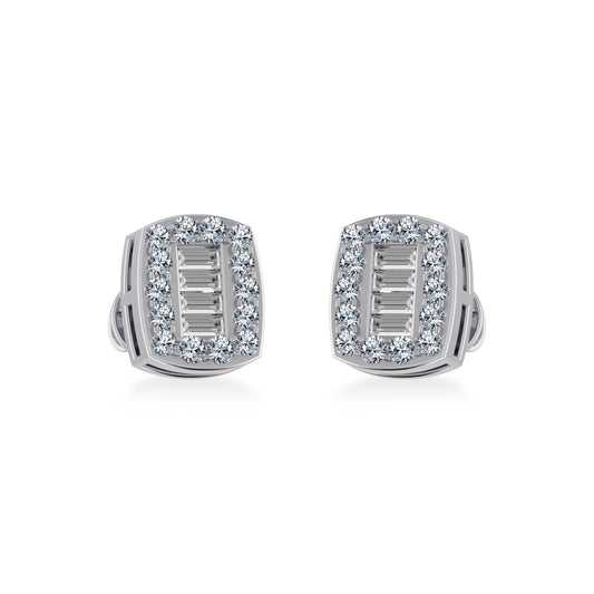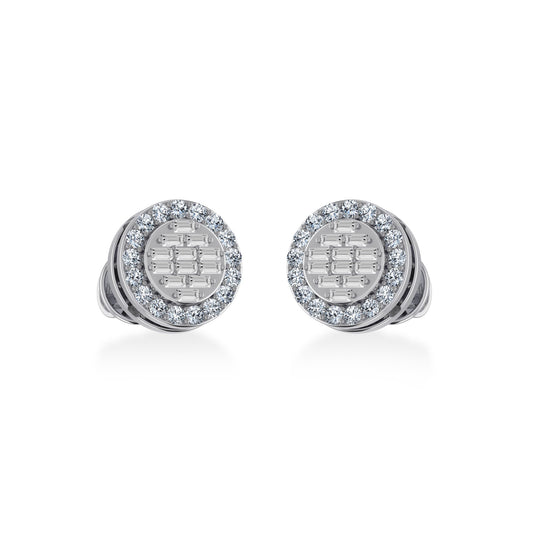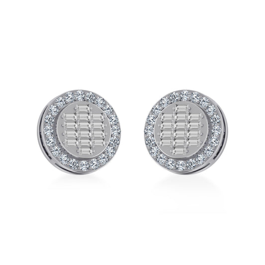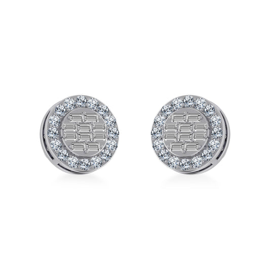 14K White Gold Round Baguette Diamond Stud Earring 5/8 Cttw