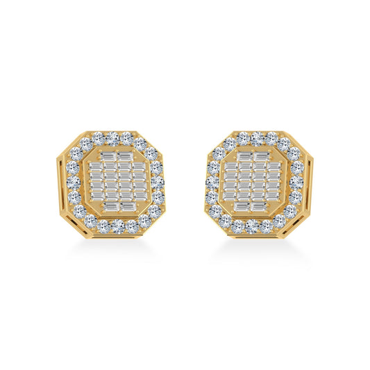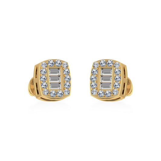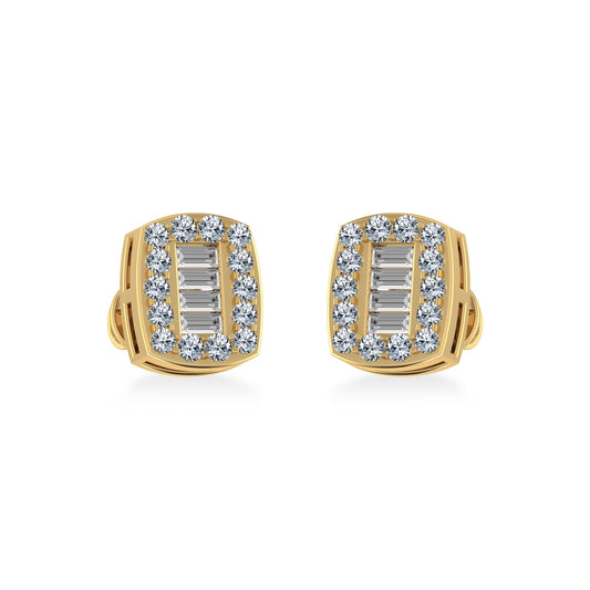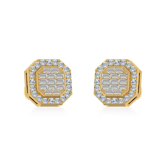 14K Yellow Gold Round Baguette Diamond Stud Earring 3/8 Cttw