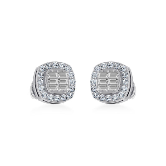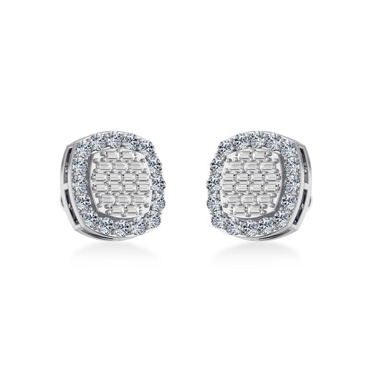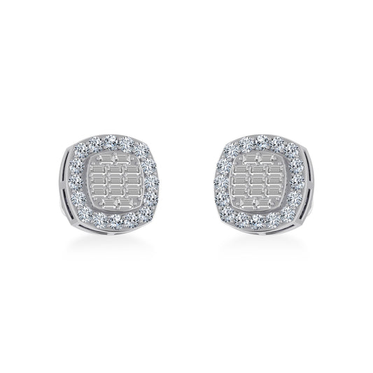 10K White Gold Round Baguette Diamond Square Shape Stud Earrings 1/5 Cttw