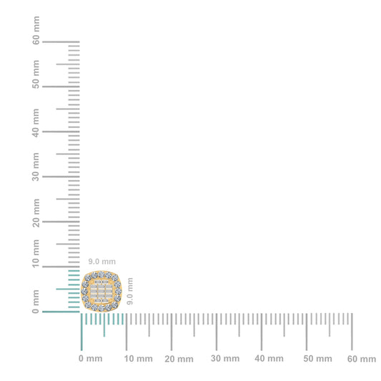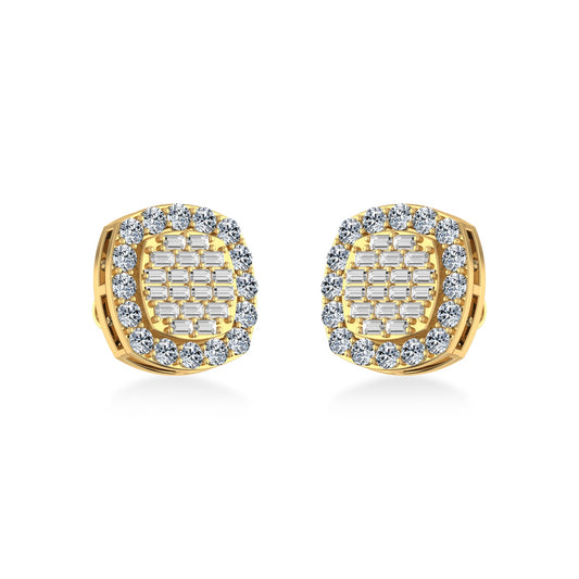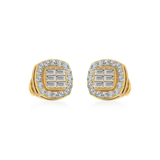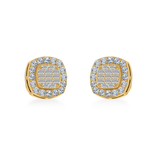 10K Yellow Gold Round Baguette Diamond Square Shape Stud Earrings 1/3 Cttw