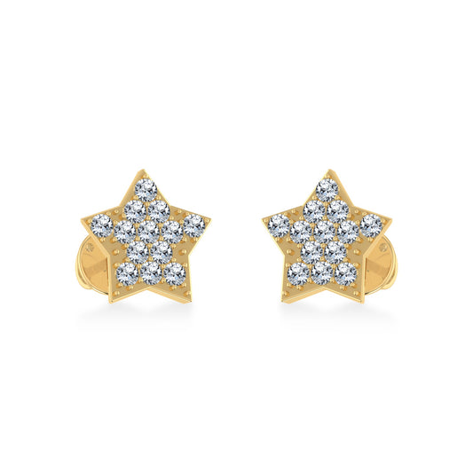 10K Yellow Gold Round Diamond Star Stud Earring 1/8 Cttw
