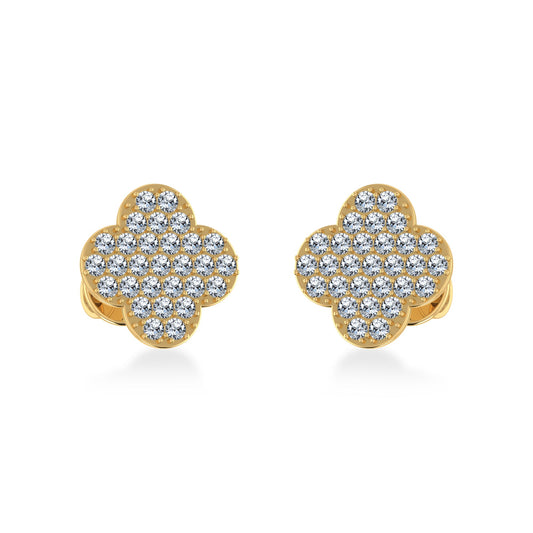 10K Yellow Gold Diamond Designer Stud Earring 1/2 Cttw