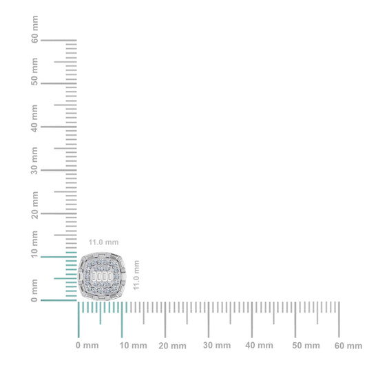 10K White Gold Round Baguette Diamond Square Designer Earring 1/2 Cttw