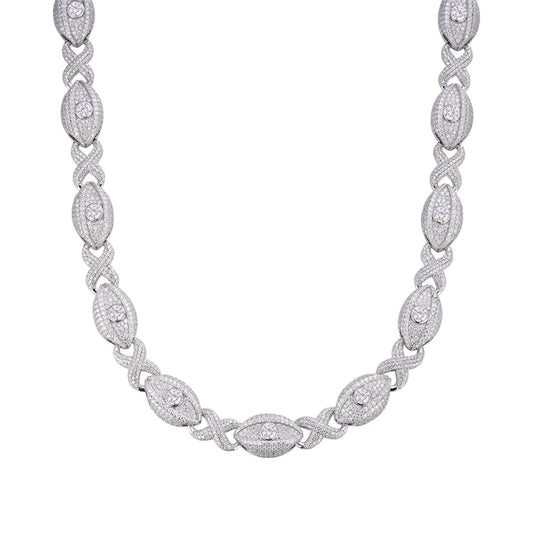 S.Silver Round Moissanite 15mm Inifinity Cuban With Evil Eye Designer 22 Inch Mens Necklace PP 27-1/8 Cttw