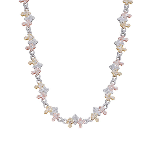 S.Silver Round Moissanite Infinity 3 Cross 22 Inch Religious Necklace RP+GP+PP 9-5/8 Cttw