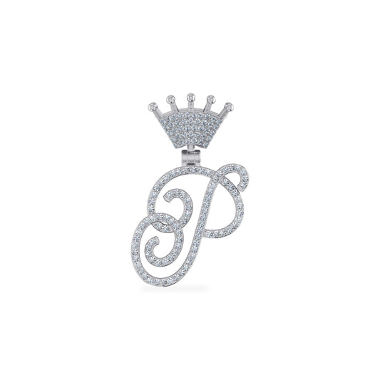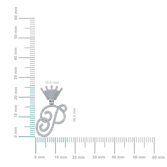 10K White Gold Round Diamond Crown P Letter Initial Pendant 1/4 Cttw