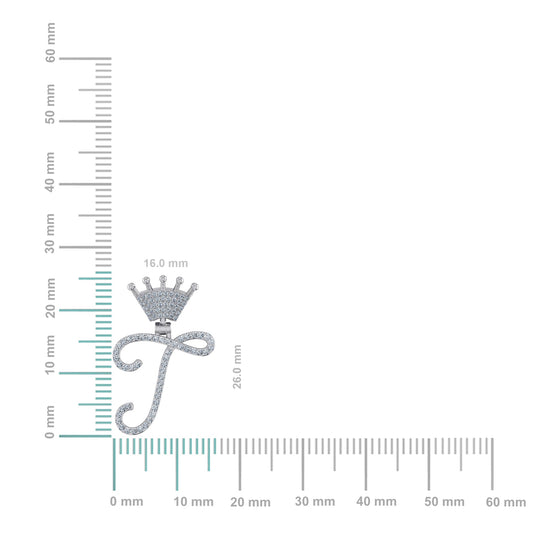 10K White Gold Round Diamond Crown F Letter Initial Pendant 1/4 Cttw