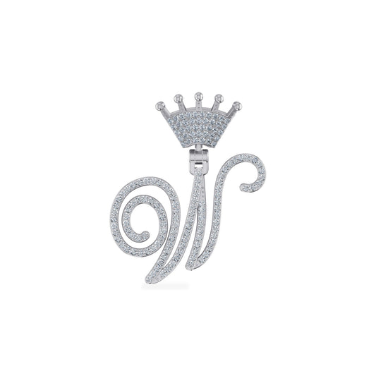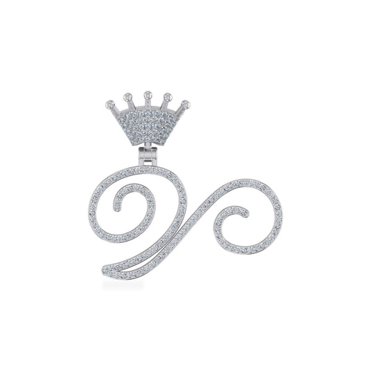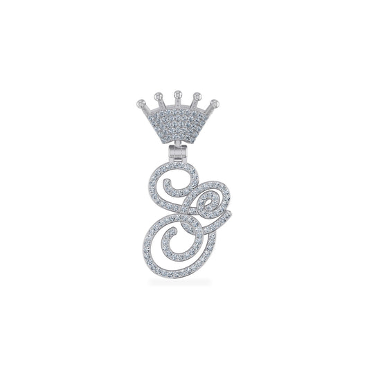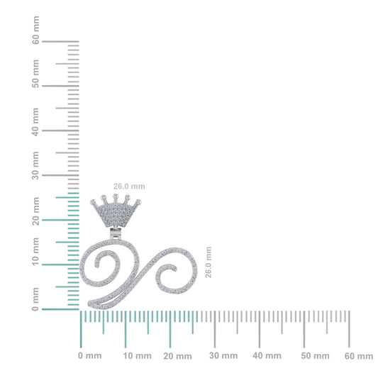 10K White Gold Round Diamond Crown W Letter Initial Pendant 1/4 Cttw