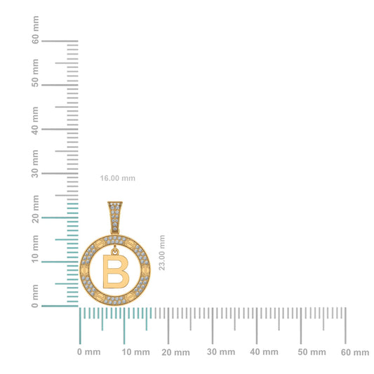 10K Yellow Gold Round Diamond B Letter Initial Pendant 1/5 Cttw
