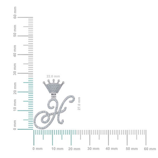 10K White Gold Round Diamond Crown H Letter Initial Pendant 1/4 Cttw