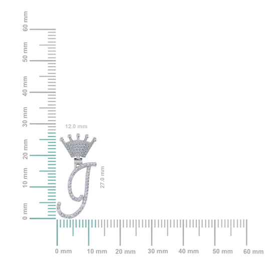 10K White Gold Round Diamond Crown J Letter Initial Pendant 1/5 Cttw