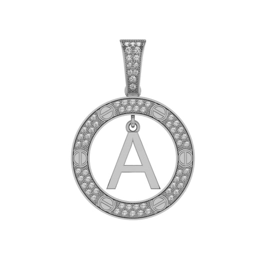 10K White Gold Round Diamond A Letter Initial Pendant 1/5 Cttw