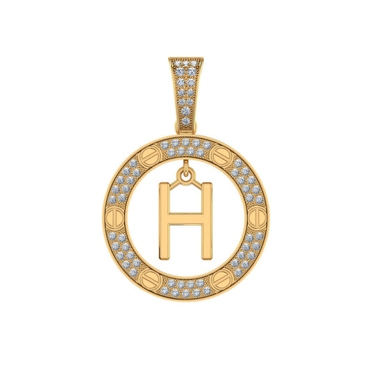 10K Yellow Gold Round Diamond H Letter Initial Pendant 1/5 Cttw