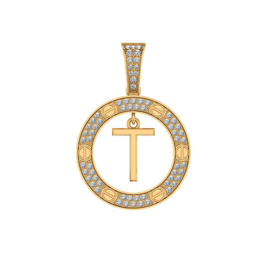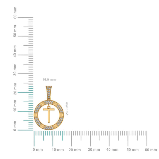 10K Yellow Gold Round Diamond T Letter Initial Pendant 1/5 Cttw