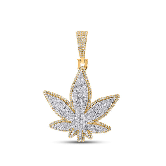 10K Yellow Gold Round Diamond Weed Leaf Pendant 1-1/2 Cttw