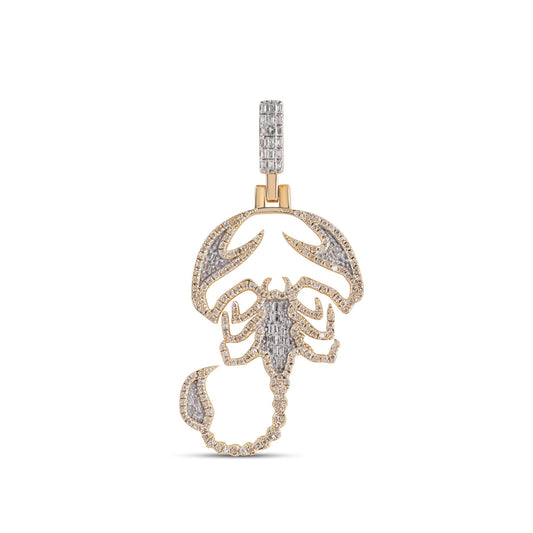 10K Yellow Gold Round Diamond Scorpion Animal Pendant 7/8 Cttw