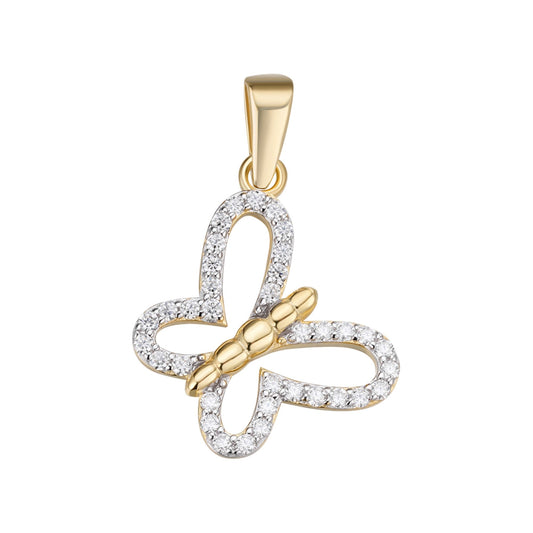 S.Silver Round Moissanite Butterfly Animal Pendant RP+GP 1/3 Cttw