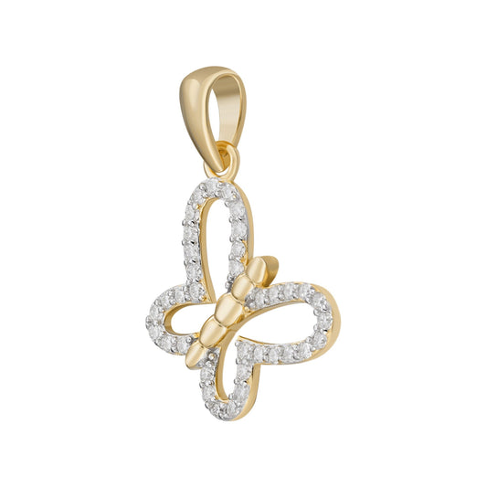 S.Silver Round Moissanite Butterfly Animal Pendant RP+GP 1/3 Cttw