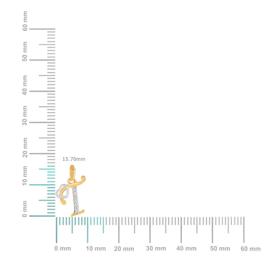 10K Yellow Gold Round Diamond T Letter Initial With Heart Pendant 1/10 Cttw