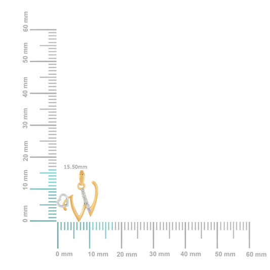 10K Yellow Gold Round Diamond V Letter Initial With Heart Pendant 1/10 Cttw
