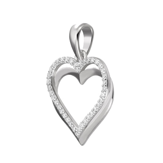 S.Silver Round Moissanite Double Row Heart Designer Pendant RP+PP 1/5 Cttw