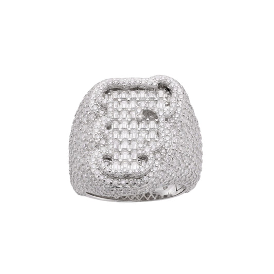 S.Silver Round Baugette Moissanite Albhabet S letter Initial SZ 10 Mens Ring RP 7-3/8 Cttw