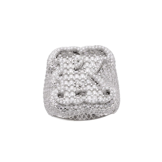 S.Silver Round Baugette Moissanite Albhabet K letter Initial SZ 10 Mens Ring RP 7-1/2 Cttw